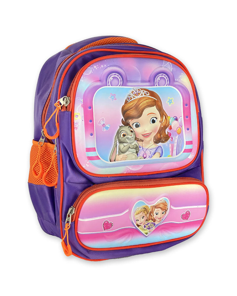 3D Sofia the First Design: Featuring a stunning 3D image of Princess Sofia and her animal friends, including Clover the rabbit, this backpack brings the world of Enchancia to life. The colorful and detailed design is sure to capture the imagination of any young Sofia the First fan.