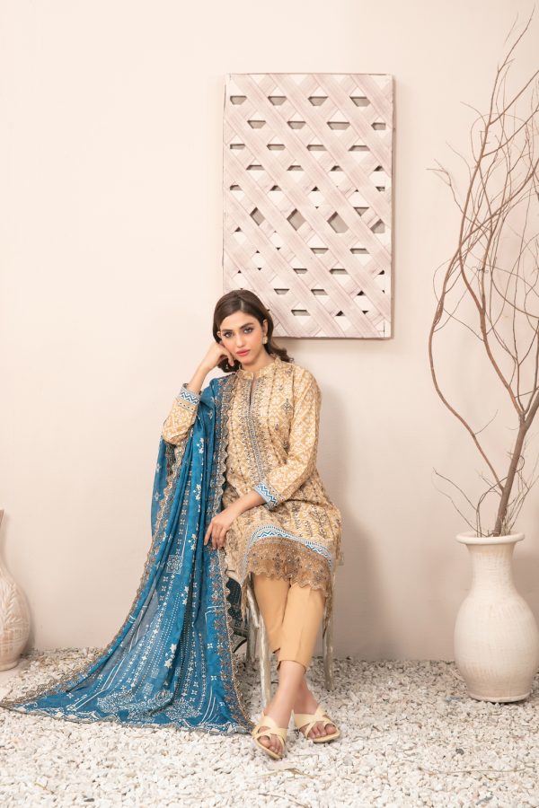 Ladies Unstitched Embroibered Lawn Suit by Tawakkal Fabrics