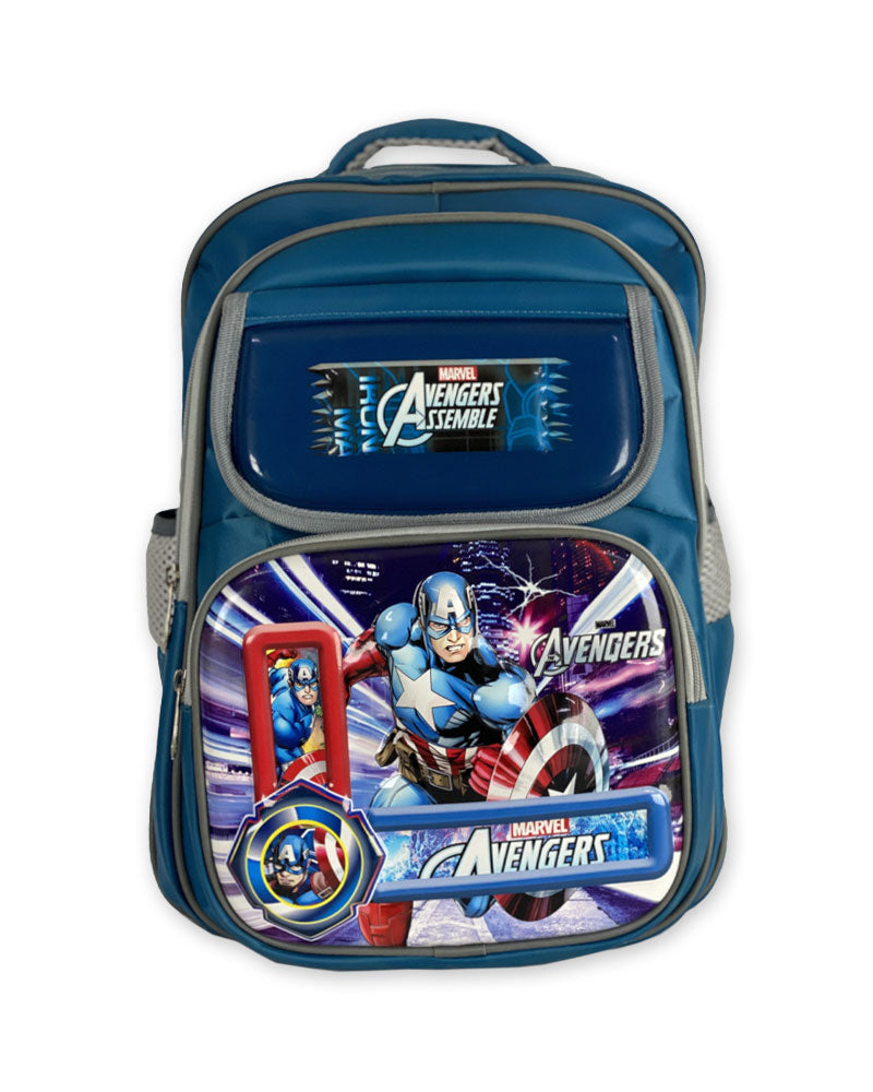 This vibrant 3D Avengers-themed backpack features a striking Captain America design, perfect for young superhero fans. Crafted from high-quality, durable materials, this backpack offers multiple compartments with smooth zipper closures to keep school essentials organized and secure. The spacious main compartment easily fits books, notebooks, and folders, while the front pockets provide extra storage for smaller items like stationery and snacks.