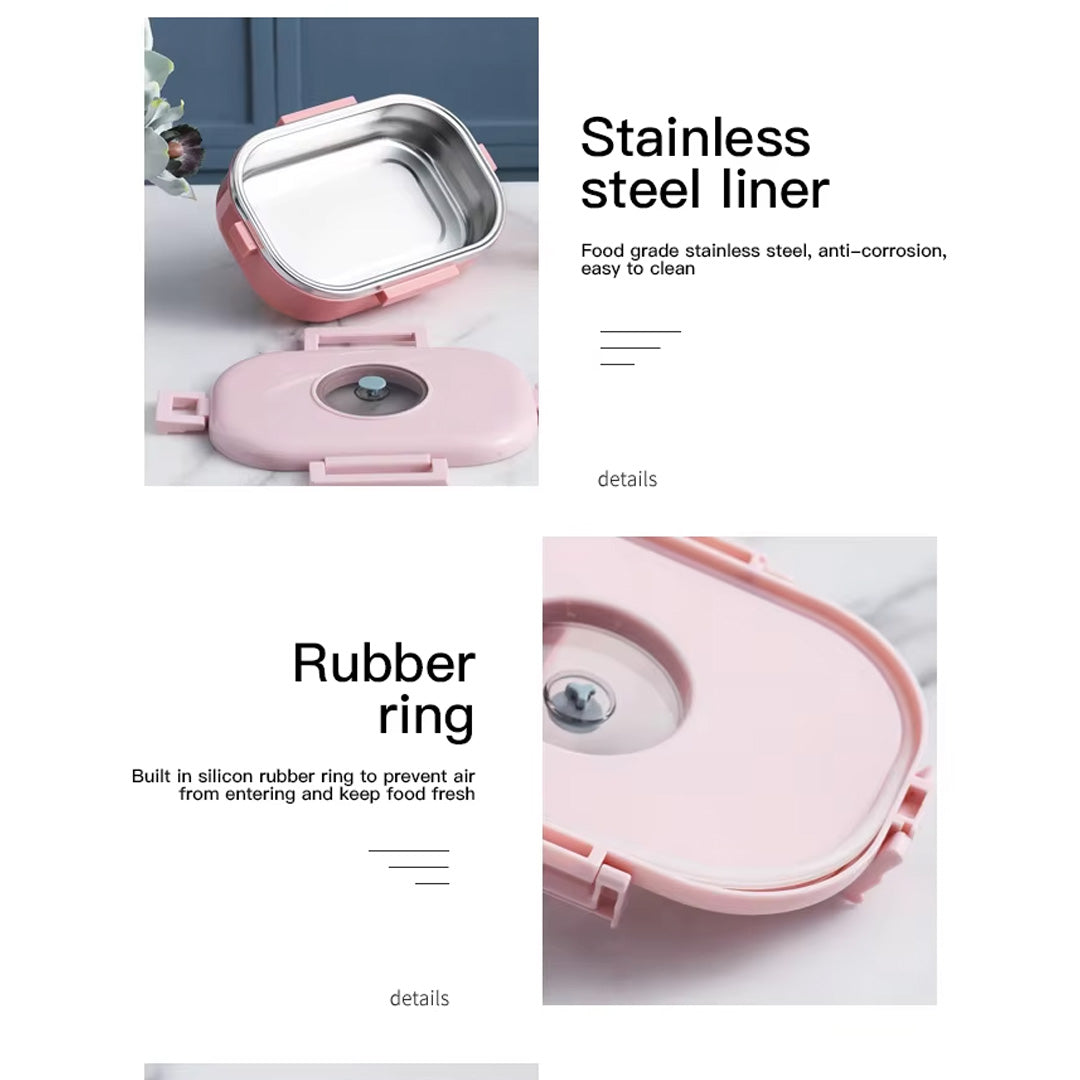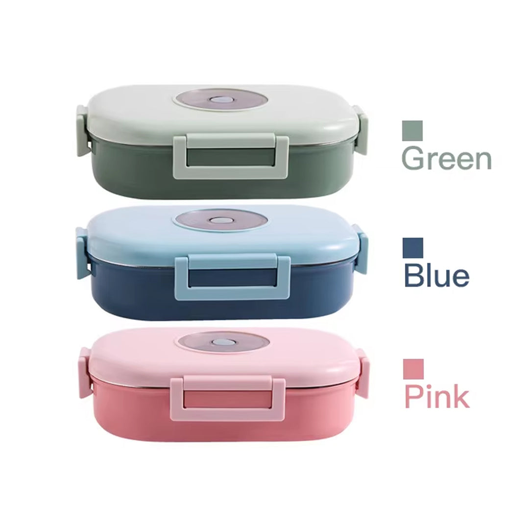 Durable stainless steel lunch box with a leak-proof design and secure locking clips. Available in Pink, Blue, and Green, it’s perfect for fresh meals on the go easy to clean, portable, and safe for daily use.