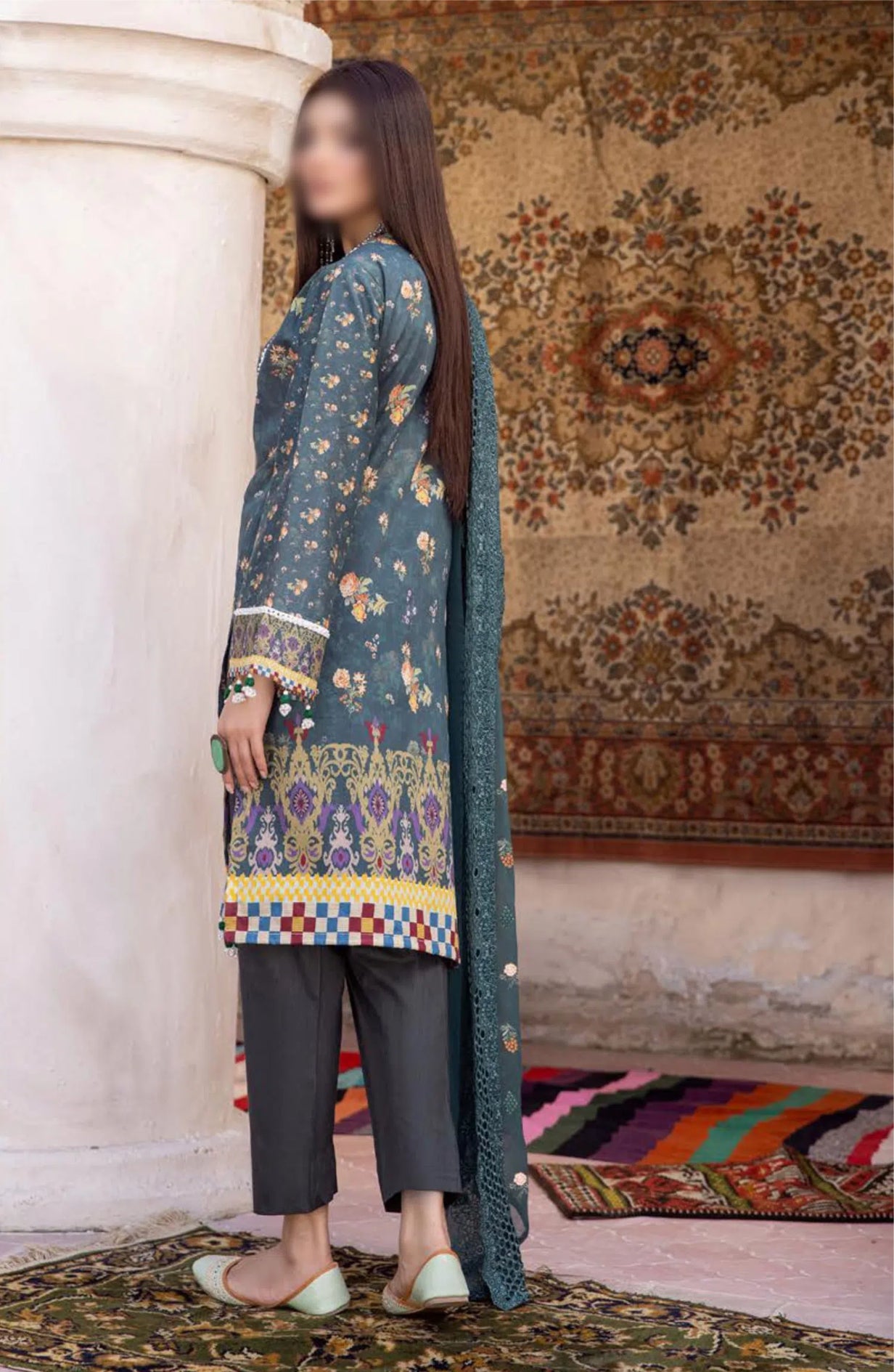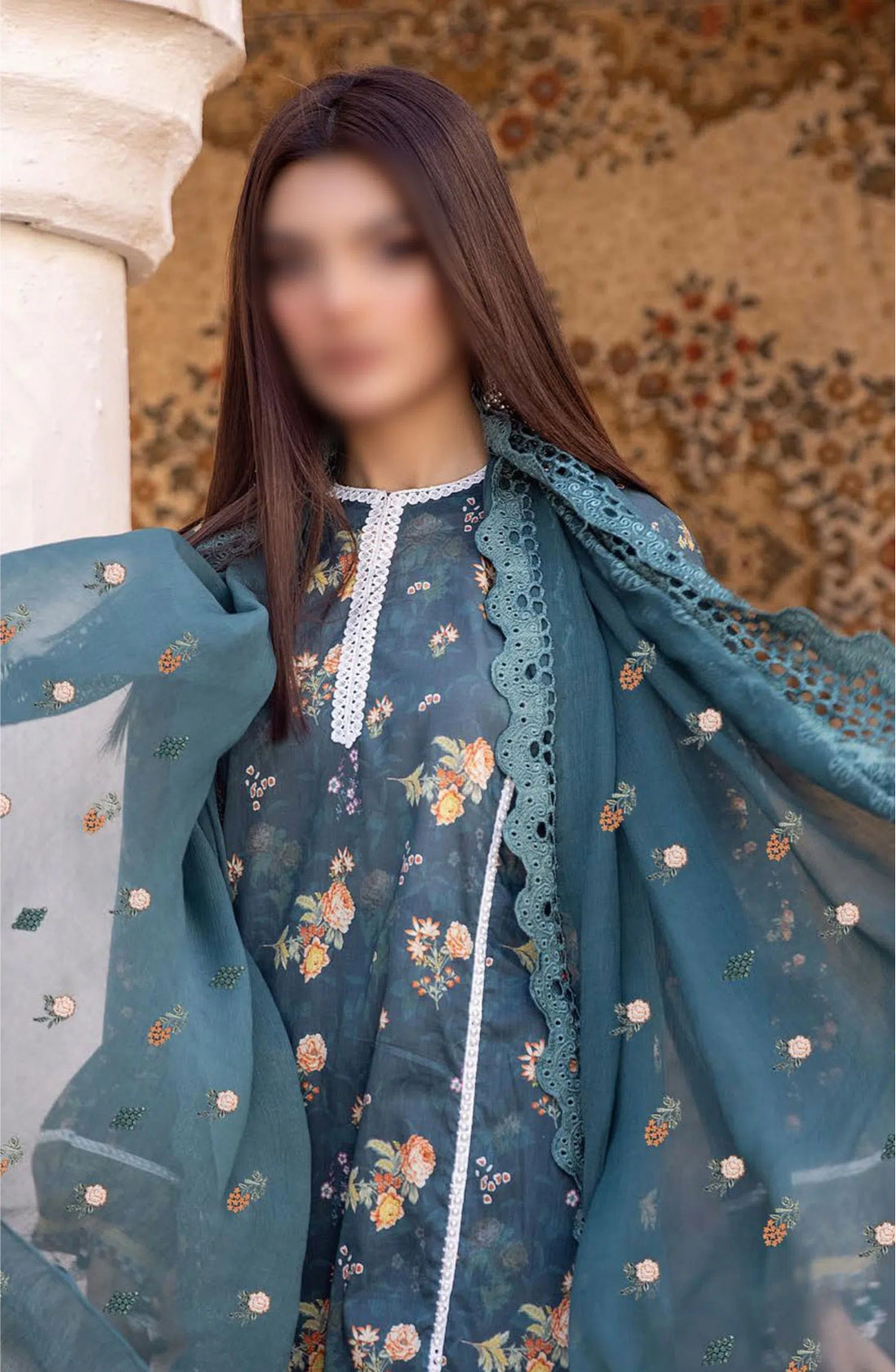 3 Piece Digital Printed Lawn Suit with Embroidered Crinckle Dupatta.