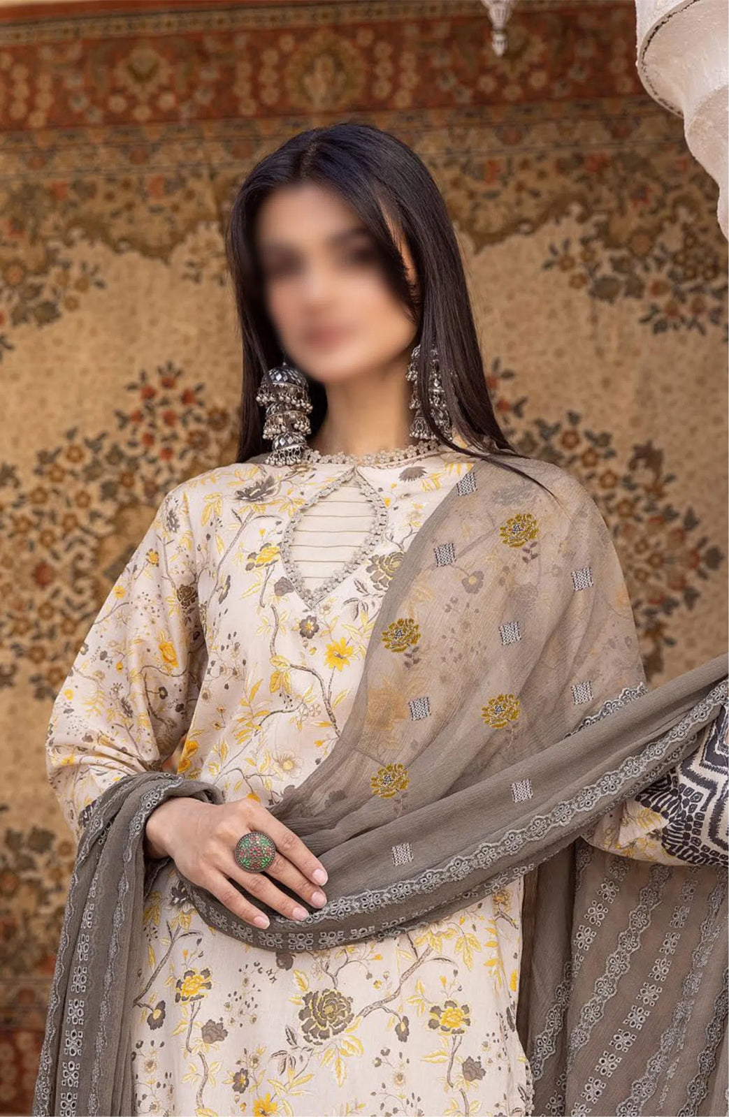 3 Piece Digital Printed Lawn Suit with Embroidered Crinckle Dupatta.