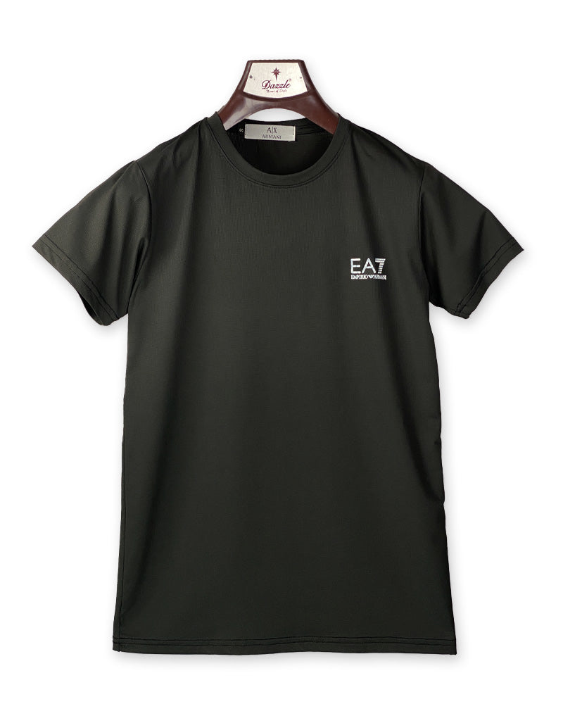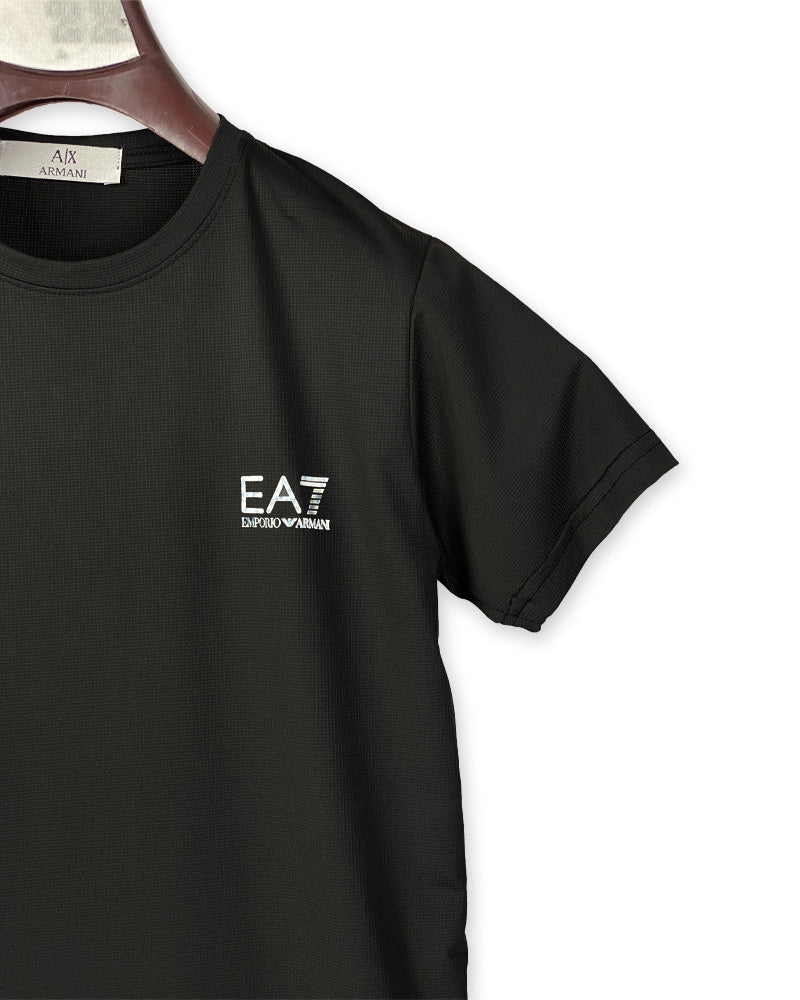 - Design: EA7-style logo on chest, round neck, and short sleeves
