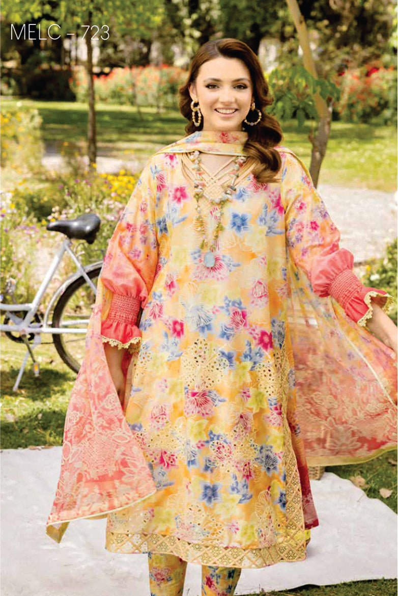 • Digital Printed Embroidered Fine Lawn Chikenkari Shirt