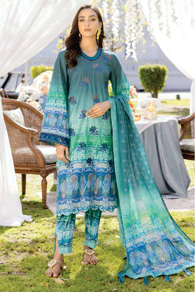 - Digital Printed Embroidered Fine Lawn Chikenkari Shirt