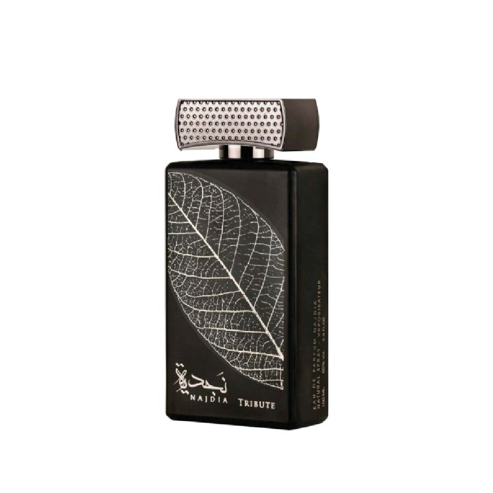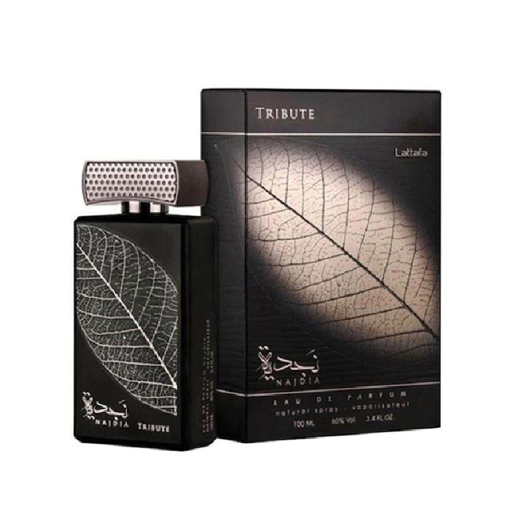 Najdia Tribute was launched in 2021. Top notes are Apple, Ginger, Mandarin Orange and Bergamot; middle notes are Violet Leaf, Guaiac Wood, Saffron and Cedar; base notes are Leather, Ambergris, Agarwood (Oud) and Sandalwood.