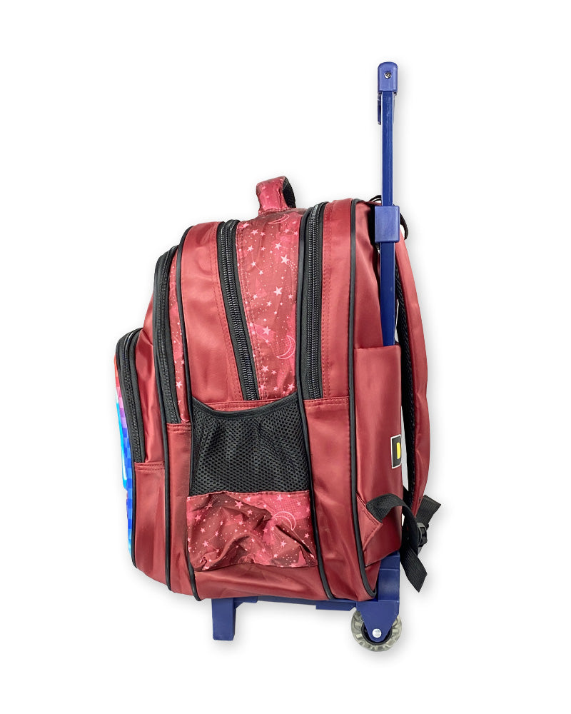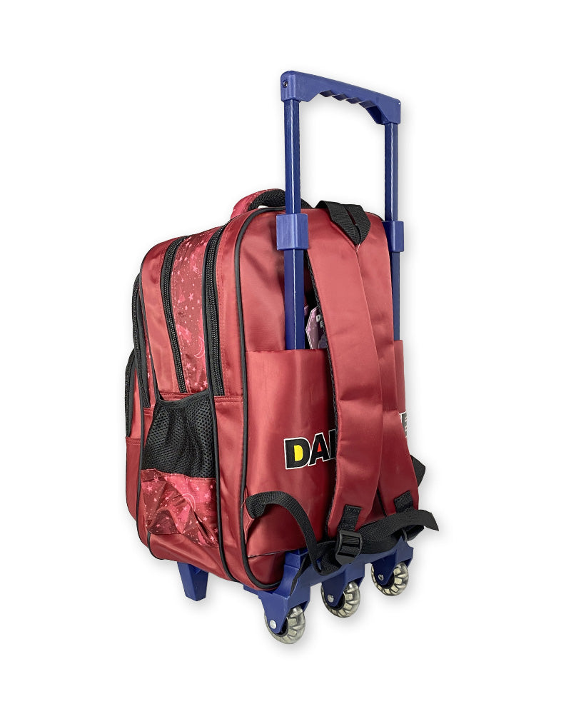 - Sturdy wheels and extendable trolley handle for easy carrying.