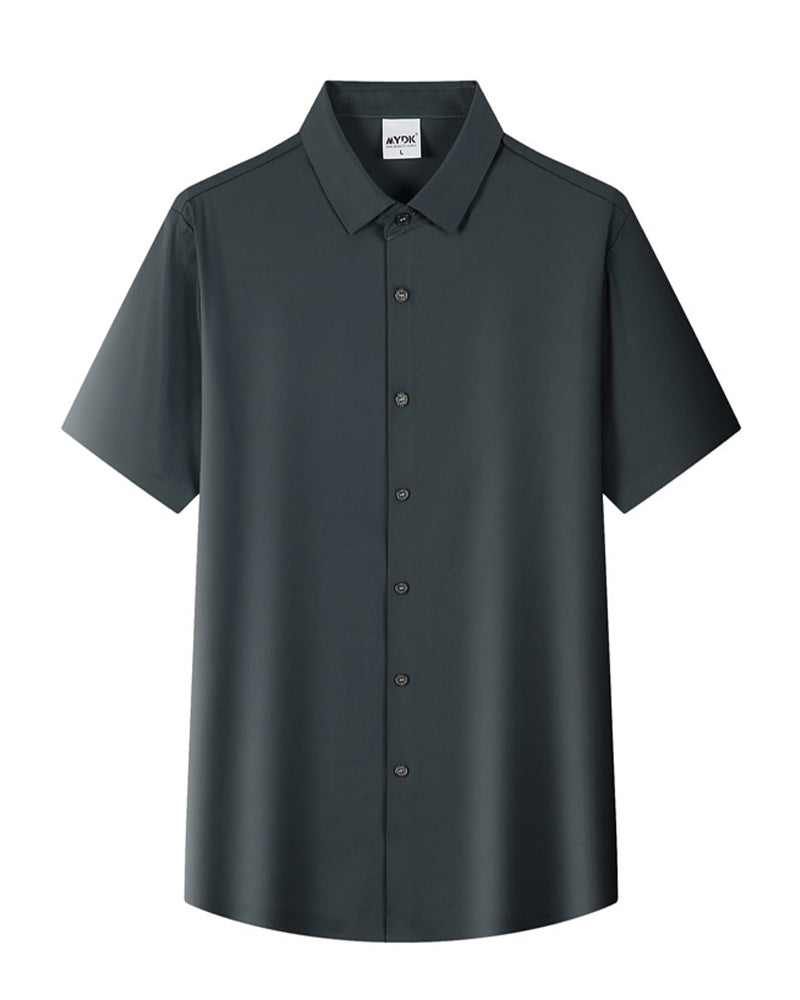 Summer Men Solid Color Short Sleeve Loose Single Breasted Casual Shirt