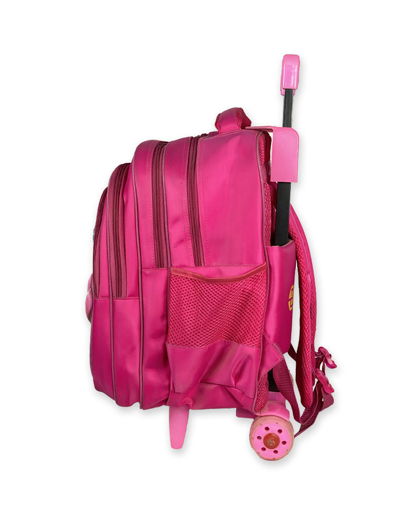 3D Print Teddy Bear Girls Trolley Backpack – Pink Rolling School Bag with Cartoon Design